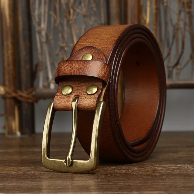 3.8CM Genuine Leather Casual Belt for Men with Copper Buckle