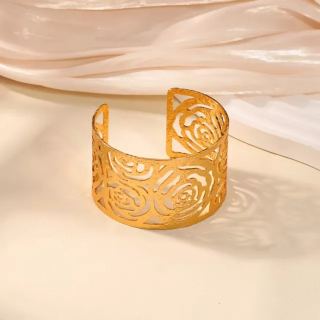 The Minimalist Vintage Geometric Flower Bangle Bracelet stands out because of its perfect balance between vintage inspiration and contemporary flair. Made from high-quality stainless steel, this bracelet promises both durability and style. Its gold-colored finish gives it a rich, refined look, while the hollow flower design adds just the right amount of detail. Whether you’re heading to a holiday party or giving it as a gift, it’s sure to catch the eye and spark compliments.
