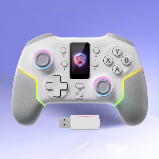 This game controller goes far beyond the basics. Featuring a 1.47-inch TFT display, you get real-time information right on your controller without breaking focus. The Hall joystick and double-cut Hall triggers provide ultra-precise input with wear-resistant durability, while the conductive adhesive ABXY keys ensure smooth and responsive action with a lifespan of 3 million cycles. Anti-slip grips, customizable back keys, and RGB lighting make it both functional and stylish.