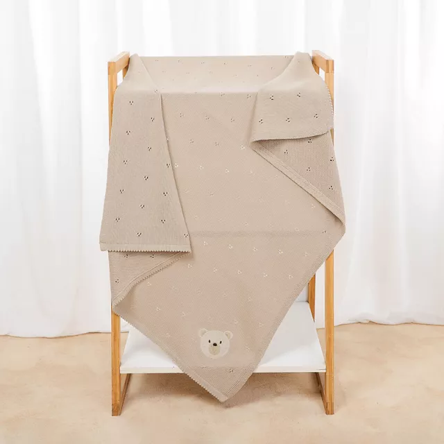 Give your little one the gift of comfort with this super soft cotton knit baby blanket. Thoughtfully designed in a timeless plaid pattern with a sweet bear detail, it’s perfect for both baby girls and boys. Measuring 40 x 32 inches, it’s the ideal size for cribs, bassinets, or strollers, ensuring your baby stays cozy at home or on the go. Its breathable cotton material makes it gentle on delicate skin, while the knit texture provides just the right amount of warmth without overheating.