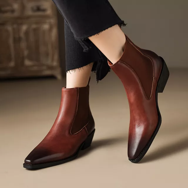 Upgrade your winter style with these modern pointed toe Chelsea boots designed for the confident, fashion-forward woman. Crafted from premium genuine cow leather, these short boots combine timeless sophistication with everyday comfort. Their sleek silhouette and subtle retro touch make them perfect for pairing with jeans, skirts, or dresses, bringing a refined edge to any cold-weather outfit.