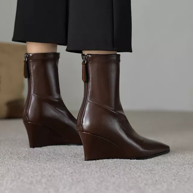 Make every winter outfit unforgettable with these stunning Women’s Pointed Toe Wedge Ankle Boots. Designed for modern elegance and effortless confidence, these boots combine sleek fashion with comfort and practicality. Crafted from soft microfiber and stretch fabric, they mold beautifully to your feet, giving a secure and flexible fit that moves with you all day long. With a stylish pointed toe and high 2.7-inch (7 cm) wedge heel, these boots add height and grace while keeping your stride stable and comfortable.