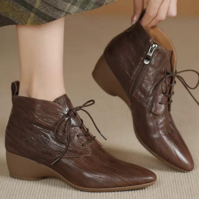 Refresh your wardrobe with these stunning women’s genuine sheepskin ankle boots — the perfect blend of luxury, comfort, and edgy elegance. These lace-up boots with a side zipper are thoughtfully handcrafted from high-quality materials, designed to offer both fashion-forward style and everyday functionality. Whether you’re heading out for a casual coffee date or strolling through crisp autumn leaves, these boots will elevate your outfit while keeping your feet cozy.